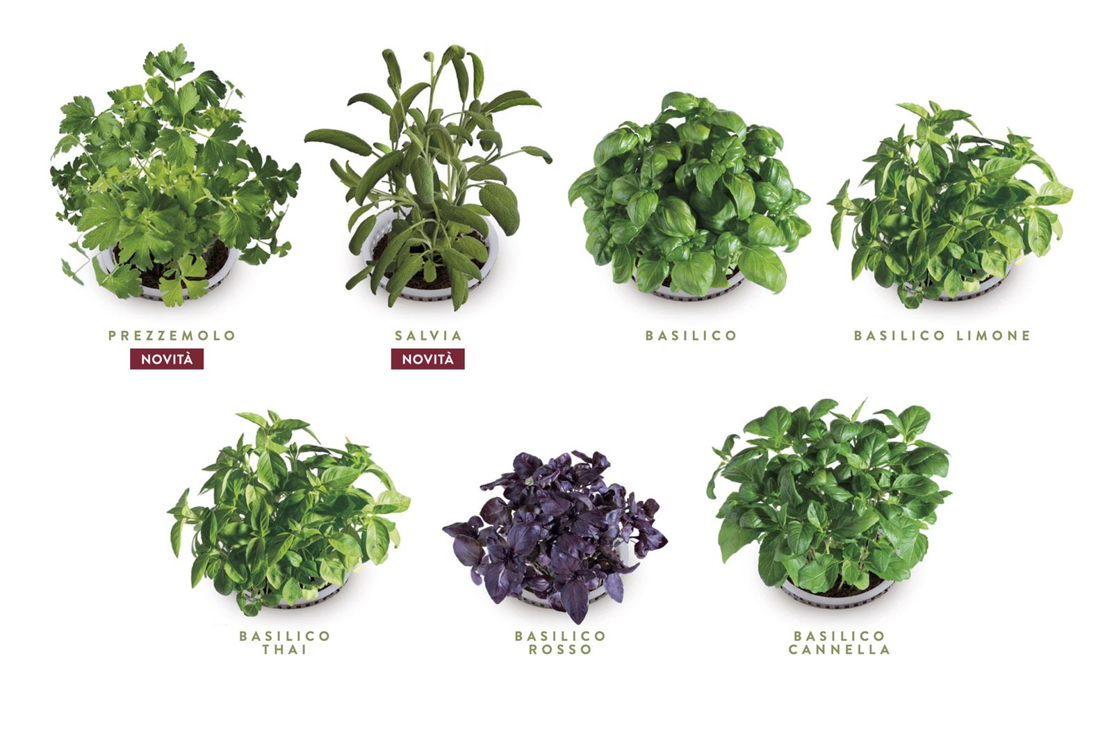 Sono disponibili basilici in tante varietà sorprendenti, come il basilico al limone o alla cannella, la salvia ananas, la menta bergamotto.